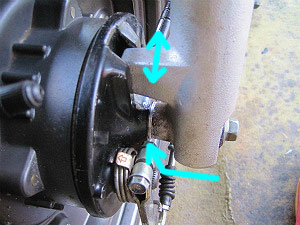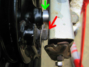 フロント・フォークとホイール(ブレーキ・ドラム)の隙間。