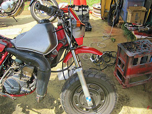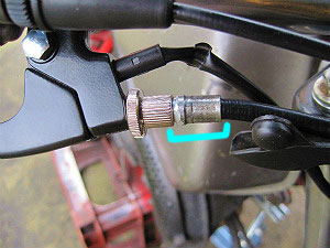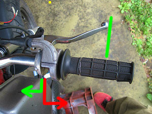 エイプのフロント・ブレーキはアクセル一体型。 |