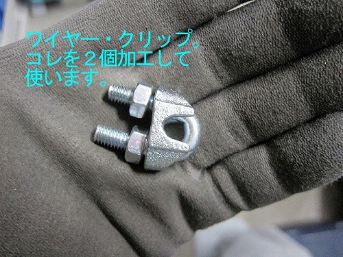 ワイヤーを挟んで止めるヤツなので強度は問題ないはず。 |