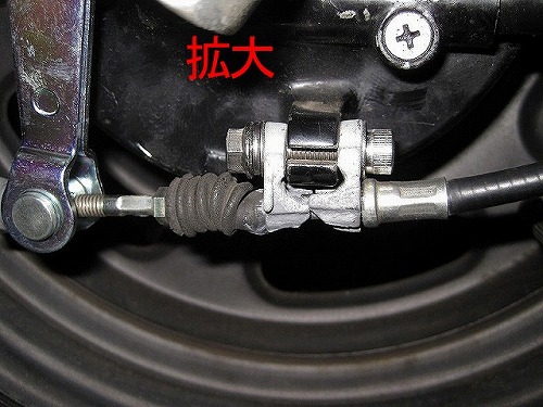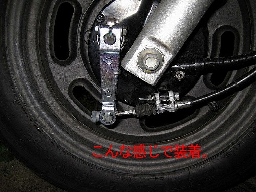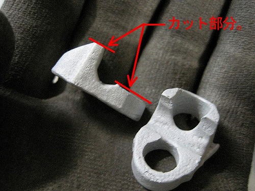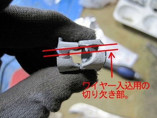 純正ドラムのワイヤー取付部に合うように加工します。 |
