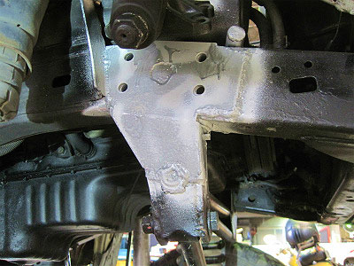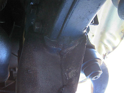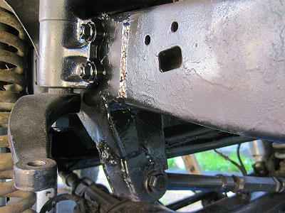 一時的な補強(ステアリング・ギア・ボックスとフレームの合わせ目が面受け出来るように。)も兼ねて