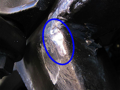 青丸部分。若干塗膜が剥がれてます。 |