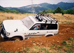 V字でスタックした車を出そうと、
