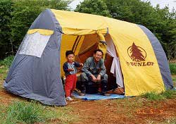 りょうすけくんから借りたテントにて…。 |