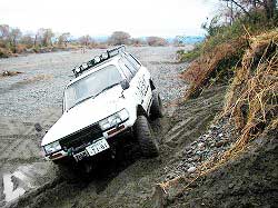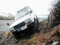 | 実はこの前に、スタックしているおじいちゃんのパジェロを助けてあげました。 孫と犬を連れて散歩に来たんだけど、砂の所で遊ぼうとしたら… ということでした。 なんかこっち見ながらスコップ持って降りてたんで「?」と思って 寄って行ったら「引っ張ってくれ〜」と助けを求められたんでーす! |
