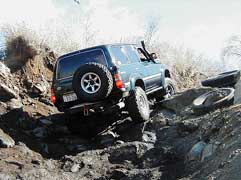 これはちょっと上のタイヤ&ロック。向こうで見ているのは安倍川もちさん。あきら君、予想外のラインで遊んでます。 |
