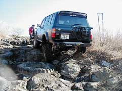 まずはゆきちゃん。ホイールベースの関係でちょうど岩に遮られ、断念! |