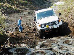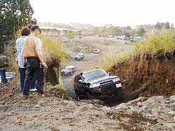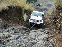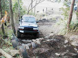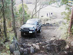 | これは向かっている真っ最中! でも、この時ヒヤヒヤ…。 だって、下に埋めてあるのは車…。 なんかにタイヤ引っ掛けたら レスキューどこではないから…。 結局、もう一つ上のコースから入りました。 |