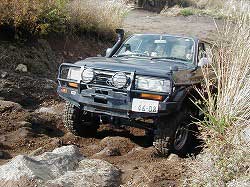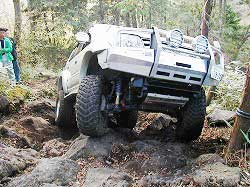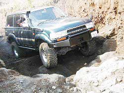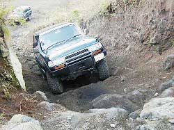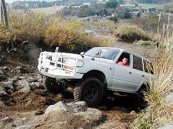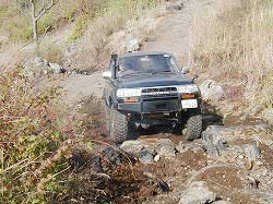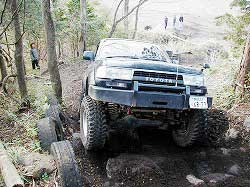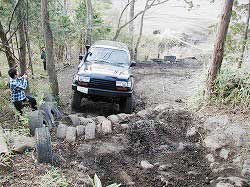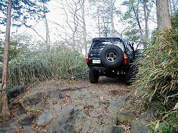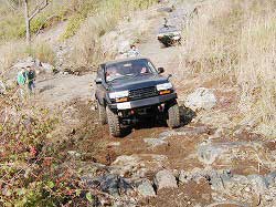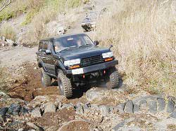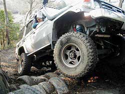 タイヤを越え、次の岩にフロント・タイヤを 引っかけ見事クリア! |