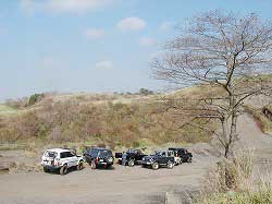 ところが… おいらがヘンな所で止めちゃったので 動けなくなり、降りて状況確認です。 結果、仕切りなおすということで、 バックで下まで戻ることに…。 ごめんね、たけうちさん…。 |