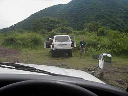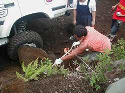 | よしかつさん、今回もレスキューを試みてくれましたが、 いかんせん、今回のはまり方はすごく、びくともしません… |