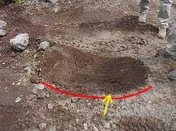 | 赤矢印の岩…。 バックしたときに掘り出されてきました。 |