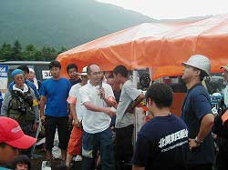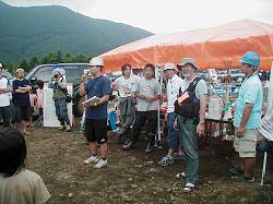 | 司会はもちろん、ぱ〜じゃ〜さんです。 | 一番の遠距離を自走参加の ひろ@鹿児島さん、 「来年も来ます!」 トラブルを抱えながらの参加、 お見事でした。 |