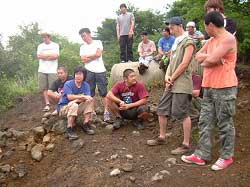 | ゴリさん曰く、 「もともとは丸い岩が、みんなのアタックで削られてこんな形になったんだよ。」 |