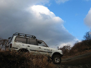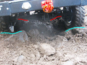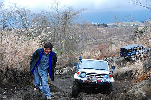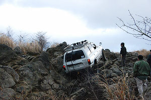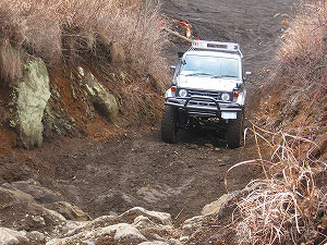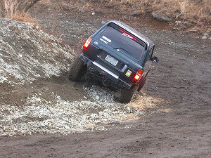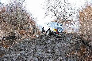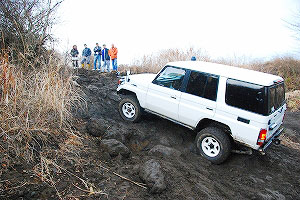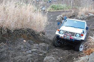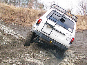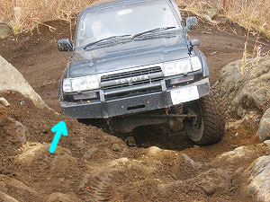 フロントは引っ掛からないし、 リアもフカフカな土の上で むなしく空転するばかり…。 |