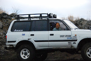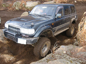 | 運転席側のリヤ・タイヤが デカタイヤを越えられず。 |