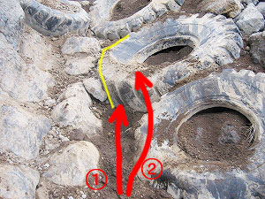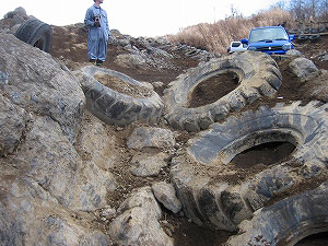 最後は、上手にステアリングを当てて デカタイヤの上に乗り、 いい感じでクリアしました。 |