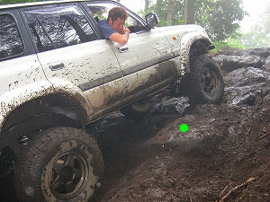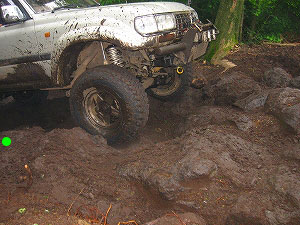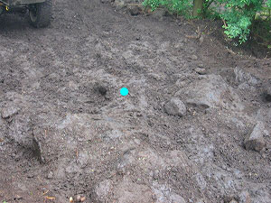 コースの状況は、雨により、さらにズルズルな状態に…! |