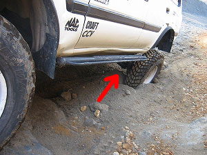 @の岩にサイドシルが当たらないようにして、 |