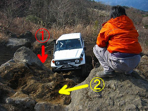 最後は、矢印の岩にリア・ショックの |