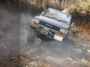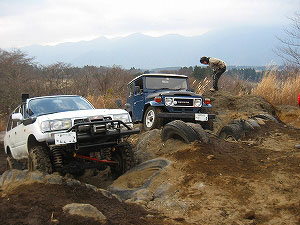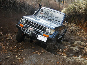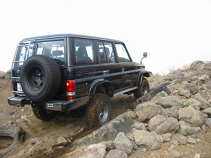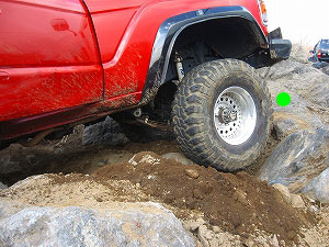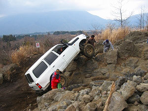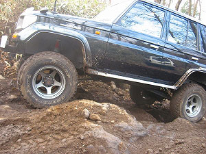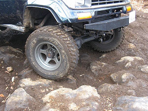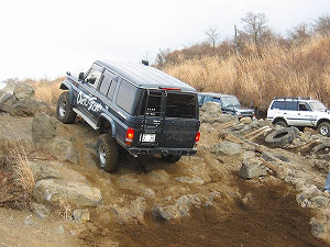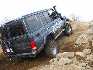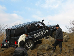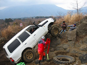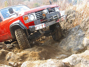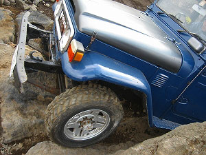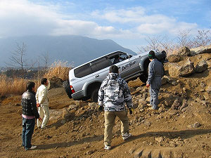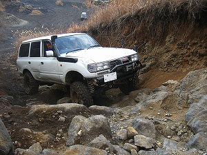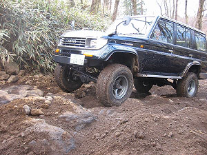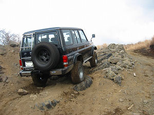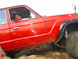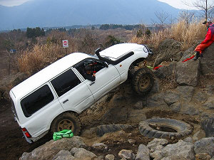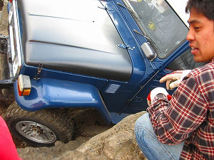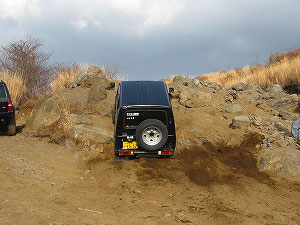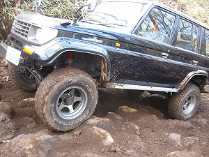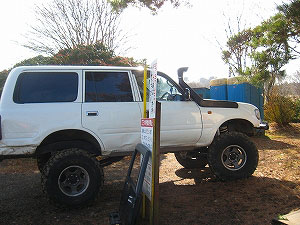 左リアが段差の下で空回り。