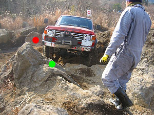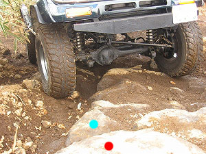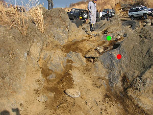 車高的に赤印の岩に