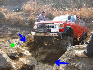 フロント・タイヤが矢印辺りまで来ると、 |