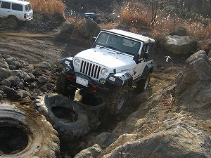 その横のタイヤと岩のV字を