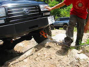 「ウインチでとりあえず岩に乗せるだけだから…。」