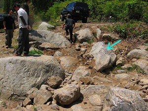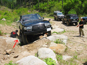 この岩をリヤ・タイヤが越えられず