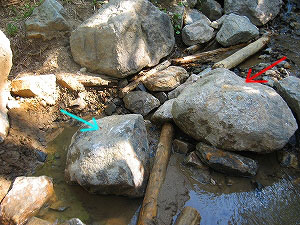 こんな岩を抱え込むラインに入ってしまい、玉砕…。 |