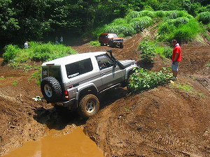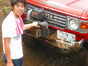斜面がヌルヌルで、フロントが落ちちゃって |