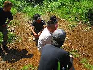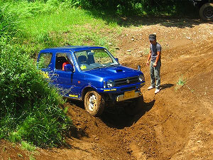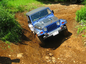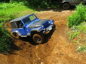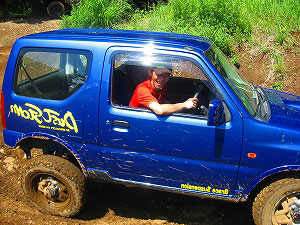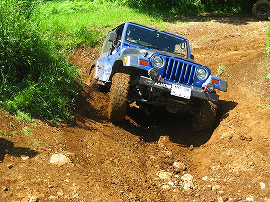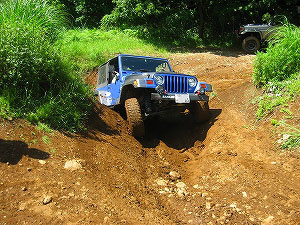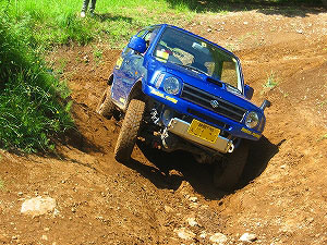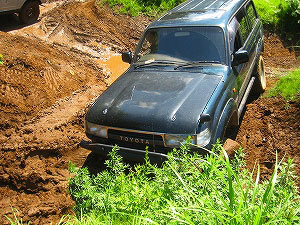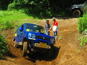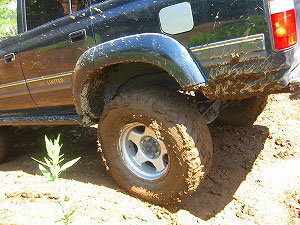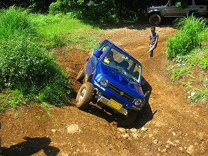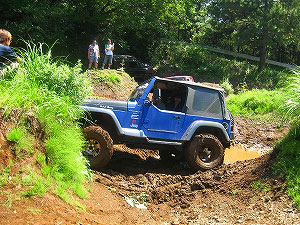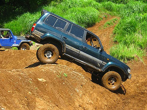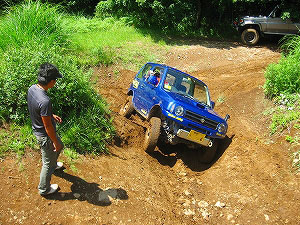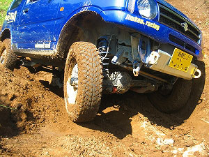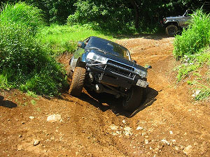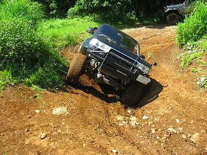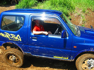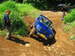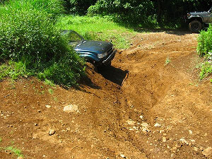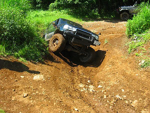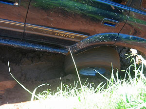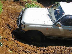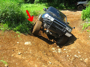 結果、リヤの右タイヤも引っ掛からず(矢印)、 |