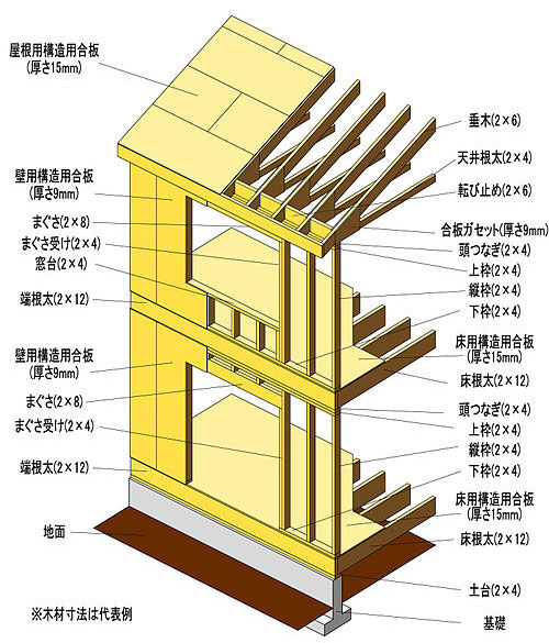 こちらはツーバイフォーの代表的な構造だそうです。 |