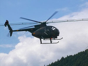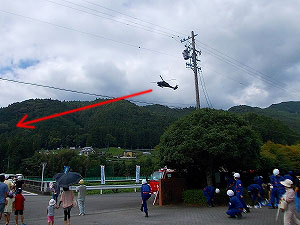 開口部から、中の様子を見て、被災者の確認をします。 |
