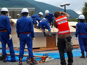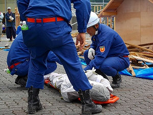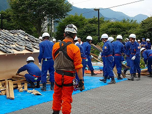倒壊家屋内の被災者を家屋外側から探す。 |