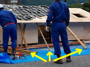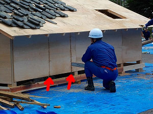 壁開口の際、建物倒壊を防ぐ為に、周囲の屋根を支える。 |