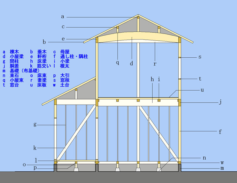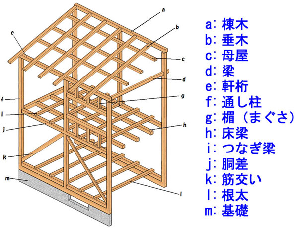 上記の2つは、代表的な木造建築の構造だそうです。 |
