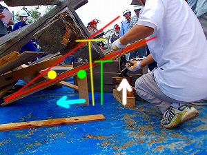 救助しあぐねていた状況から抜け出したのは、テコの原理であること、等々。 |