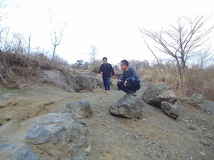 フカフカな土で苦戦中。 |