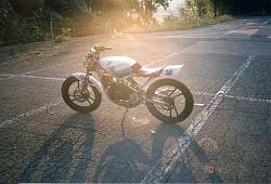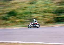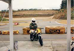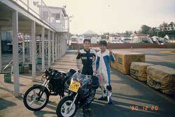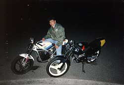 おいらがまたがっているのがガンマ。 黒いマシンがNS。 時代の差による技術力の差を まざまざと見せ付けられた 対照的な2台だった。 |