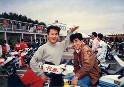 | レース当日の1コマ。 おいらは観戦&手伝い。 ほとんどないツー・ショット。 |