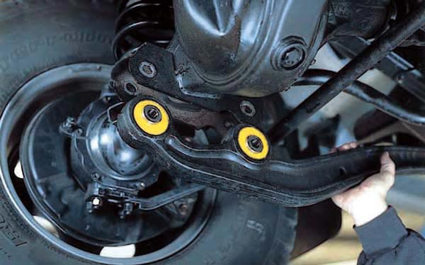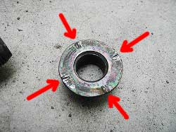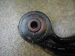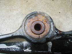 @純正ブッシュのように、ボルト穴用のカラーと、ゴムの外縁にカラーがあり、いずれも金属製。 |