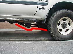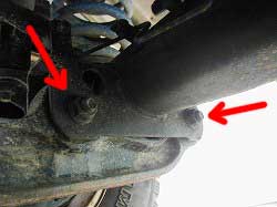 | リーディングアームの取付状態はノーマルに近いです。でっぱりが気になりますが…。 | |