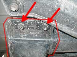 | ダウンブラケットは、ミッション・メンバーと共締めなので、 下がってこないように下から支えておきます。 |