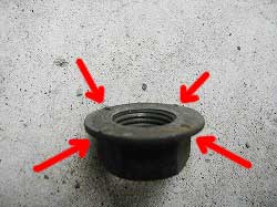 | この2箇所を外します。 | このように、こちら側はナットにツメが付いてます。 | |
