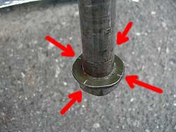 @フレーム側にボルトを通し、抜けないように軽くナットをかける。 |