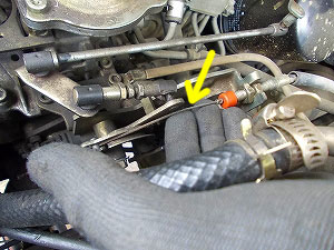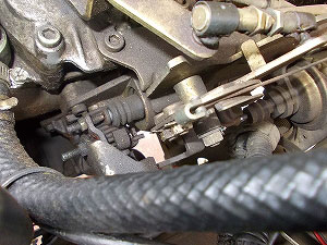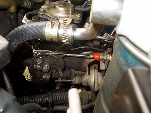 スロットルケーブルがバルブボデーに取り付いた状態で、