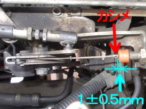なくなる程度(スロットルカムが動く直前)まで、ケーブルを引っ張り、