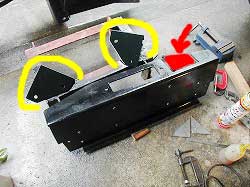 | 黄色のものがステー。 赤の部分が今回カットした部分。 |